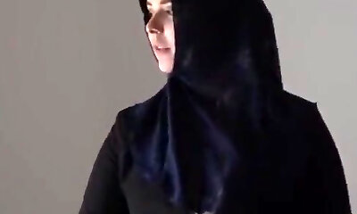A divorced Turkish muslim female jerks her hairy pussy in hijabi
