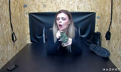Adventurous sex addict with big ass uses glory hole BBC for poon drilling