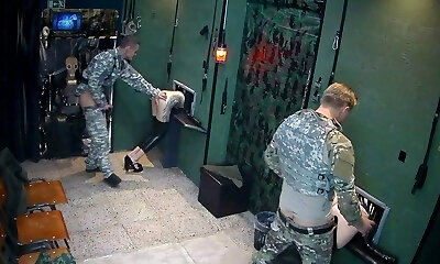 Brown-haired with Brief Hair Takes on Two Guys in a Gloryhole