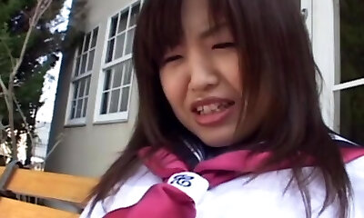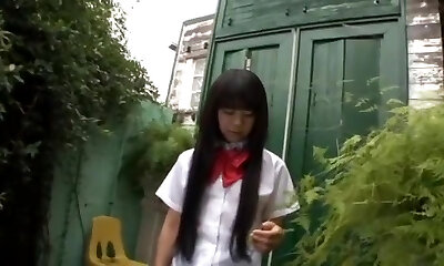 Japanese schoolgirl girl gets her cock-squeezing shaved Asian pussy fucked hard