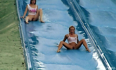 Shameless brunette gets her pussy porked in the shower and wanks in the field