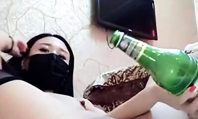 Hotkinkyjo in pink fishnet self assfucking fisting, prolapse & fuck her ass with huge wine bottle