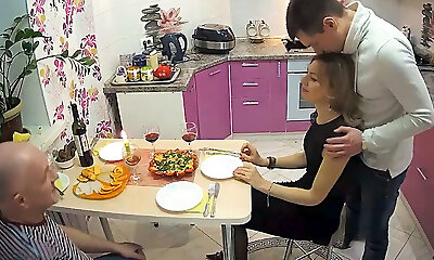 Old man nails his son'_s wife while he'_s cuckold with another girl