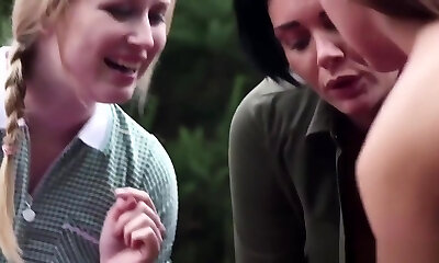 Adorable slender young chick in girlscout uniform loves ass job