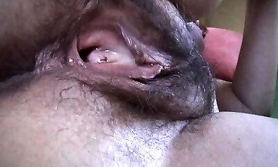 ASMR + fingering masturbate dripping hairy humid pussy close up with creampie and slime