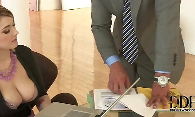 Huge-boobed whore fucked by loan agent in the office in front of cheating hubby