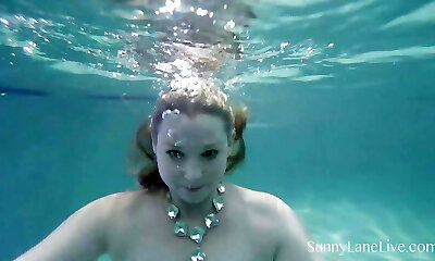 Stunning solo model swimming while showing her tits