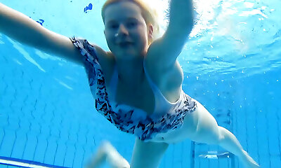 Blonde Euro sweetheart shows off her body underwater