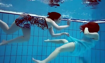 Two sexy teens swimming in the pool like sexy mermaids