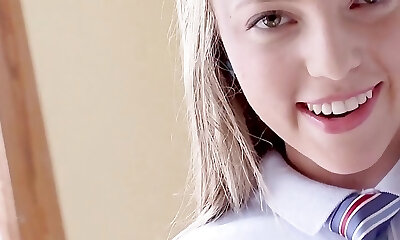 Sexy Plump-ass Chick In a School Uniform Fingers Her Tight Pussy For You