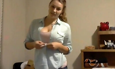 Uber-cute cam gal from Texas strips in her bedroom just for you